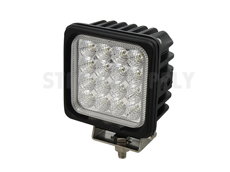 Zeer robuuste LED werklamp van stevig zwart geanodiseerd aluminium met slagvaste polycarbonaat lens. Voorzien van 16 x 3.0Watt LED’s die een brede lichtstraal geven van maarliefst 3360LM! Perfect om in de omgeving van uw bedrijfswagen een goed verlichte werkomgeving te creëren. Schokresistent en dus ook geschikt voor landbouwvoertuigen en machines. De behuizing is volledig waterdicht volgens IP68. Geschikt voor zowel 12V als 24V.